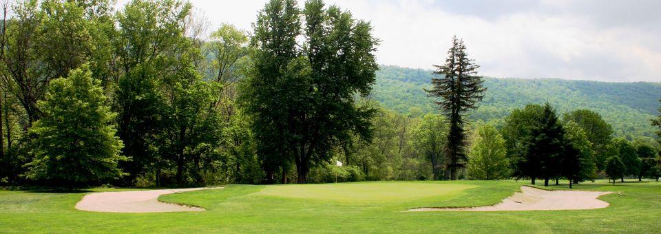 Starts off with a slight dogleg par 5, followed by a simple short par 3 and longer par 4. Then a par 4 over a creek where you can't see the green until your second shot. Up hill blind green shot par 3. Great views. Back down the hill par 4 dogleg into a valley. Then par 4 which you can't see the green behind a giant pine tree, must place your drive on the right side of the fairway, creek protects the front of the green so your second shot has to fly onto the green. Finally 2 longer par 4s, one is a slight dogleg the other straight to finish the round.